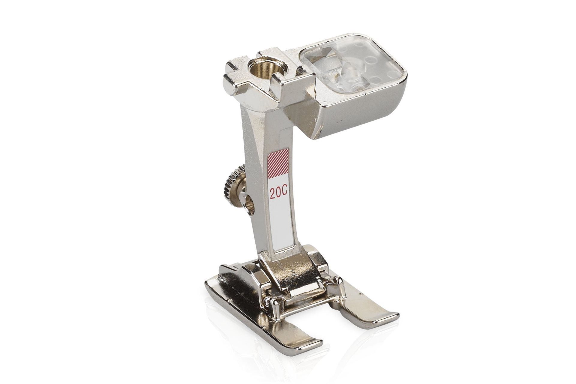 El prensatelas abierto para bordar 20C es un especialista en bordar con la máquina de coser. Con él se consigue realizar bordados Richelieu y circulares, así como repasar líneas y patrones.